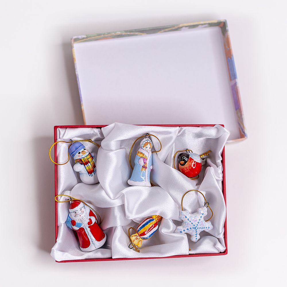 Это изделие представляет набор елочных мини-игрушек ручной работы. В набор входят Дед Мороз, Снегурочка, Снеговик, Снегирь, Снежинка и Варежки. Каждая игрушка — это уникальное сочетание узнаваемого образа и мастерского исполнения. Набор «Новый год» безусловно, лучший выбор для украшения маленькой елочки, он также станет прекрасным подарком на Новый год и Рождество вашим близким, друзьям и коллегам.