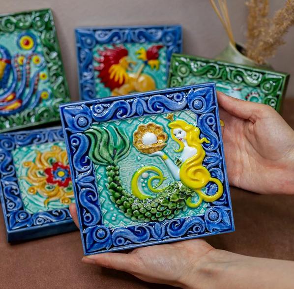 Например, в коллекциях «Ярославской керамической мануфактуры» много образцов с изображением сказочных птиц и зверей. В электронном каталоге компании также представлены модели с флористическими орнаментами. Не менее нарядно и празднично выглядят одноцветные белые, синие, зеленые изразцы.