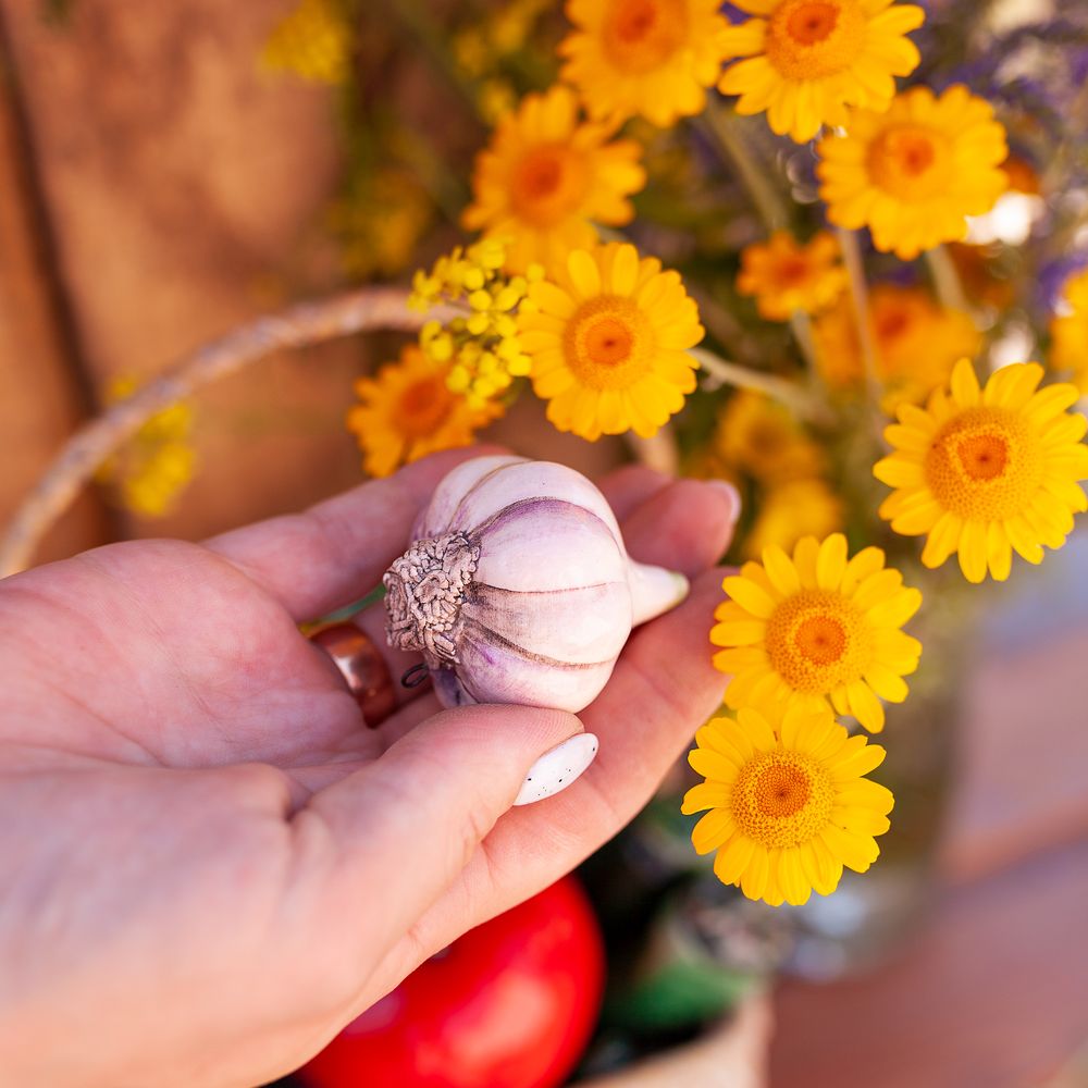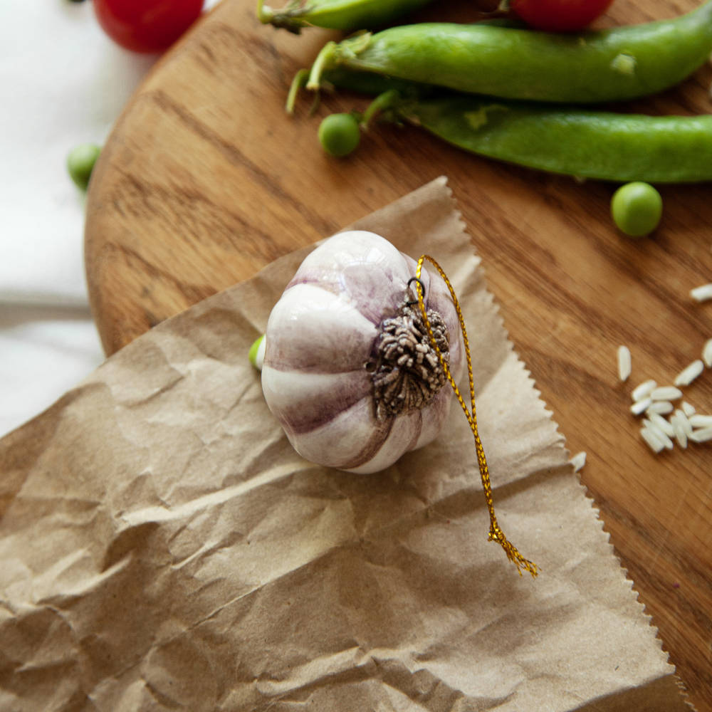 Подвес “”Чеснок”” изготовлен в технике майолика, украшен ручной художественной и входит в коллекцию украшений “” Фрукты и овощи””. Художник воспользовался всей роскошной палитрой керамических глазурей, благодаря чему изделие выглядит совершенно как настоящее. Чеснок символ силы и мужества, а во многих странах считался сильным оберегом от зла. Подвес станет отличным украшением для кухни, добавляя ей яркий акцент и создавая уютную атмосферу. А в новогодние праздники отлично впишется в праздничный декор, привнося в него нотку оригинальности. Его реалистичные детали создают ощущение, что он настоящий. Прекрасный подарок для друзей и близких, а также для ценителей керамических изделий ручной работы.”