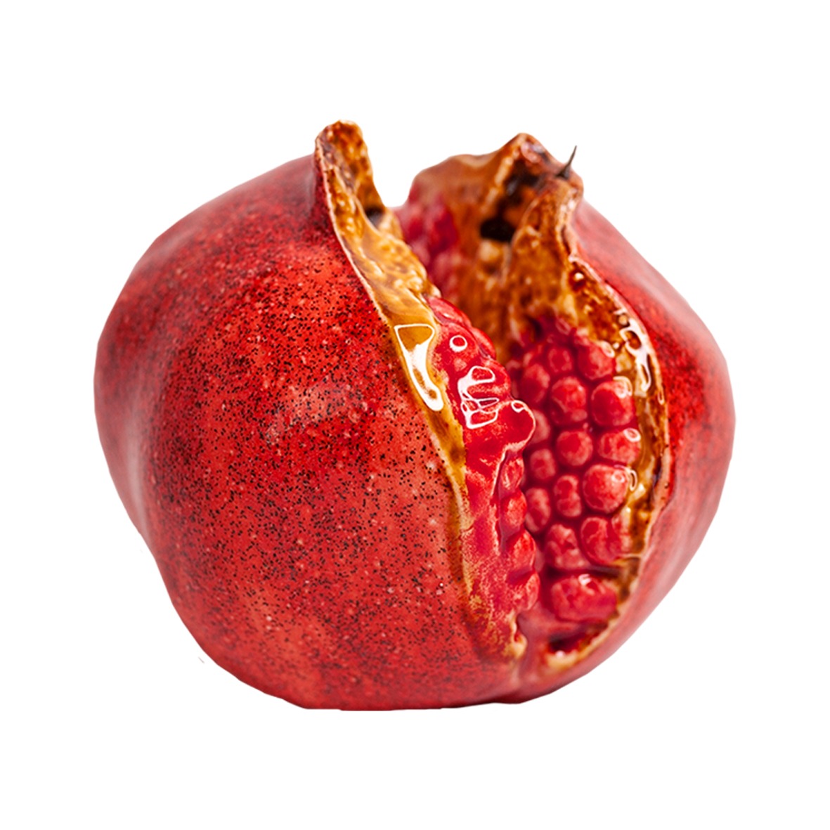 Изделие ручной работы представляет разломленный гранат. Художник воспользовался всей роскошной палитрой современных керамических глазурей, Гранат выглядит совершенно, как настоящий. Гранат обладает не только целебными, но и магическими свойствами. Он способен принести успех практически во все сферы человеческой жизни. Гранат – это фрукт сочных семян, поэтому он символизирует в Фэн Шуй плодородие. Данное изделие станет украшением вашего интерьера, будет замечательным подарком. Соберите всю коллекцию ярких и красивых фруктов и овощей. Блюдо с фруктами или овощами может быть использовано для создания эффектных интерьеров в кафе, ресторанах, барах или как модель на уроках рисования.