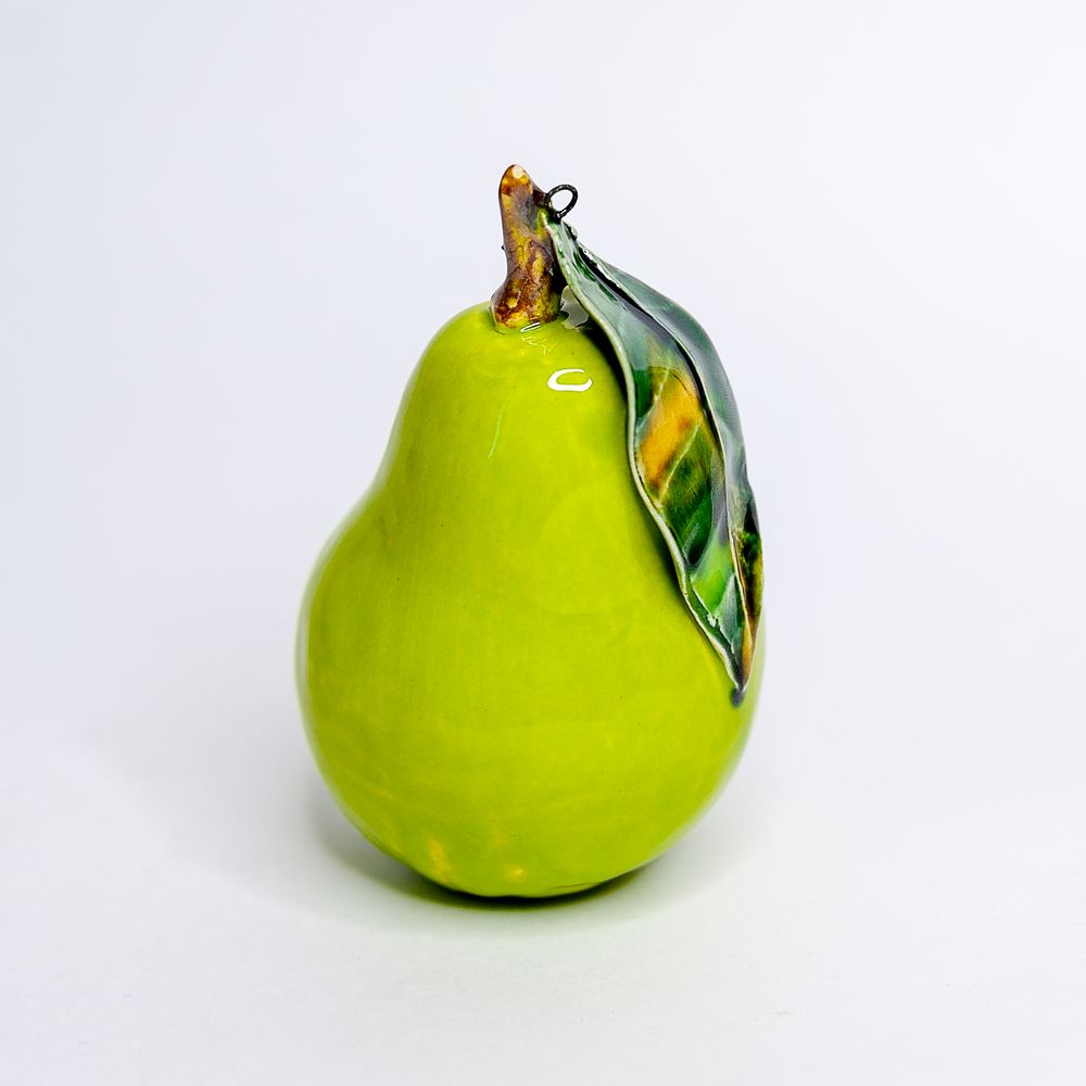Изделие ручной работы представляет керамическую грушу в натуральную величину. Художник воспользовался всей роскошной палитрой современных керамических глазурей, Груша выглядит совершенно, как настоящая. Груша – символ долгой жизни и ее образ несет в себе соответствующее пожелание. Данное изделие станет украшением вашего интерьера, будет чудесным подарком. Соберите всю коллекцию ярких и красивых фруктов и овощей. Блюдо с фруктами или овощами может быть использовано для создания эффектных интерьеров в кафе, ресторанах, барах или как модель на уроках рисования.