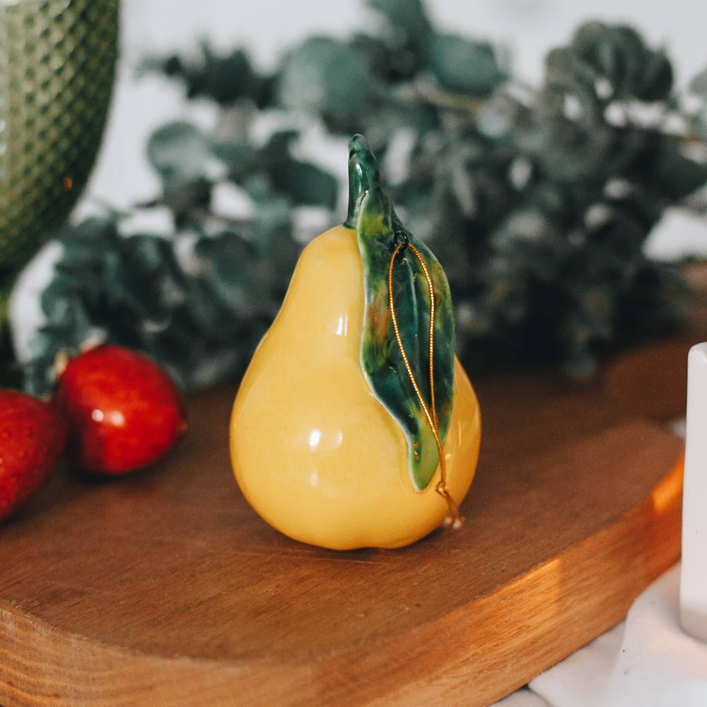 Изделие ручной работы представляет керамическую грушу в натуральную величину. Художник воспользовался всей роскошной палитрой современных керамических глазурей, Груша выглядит совершенно, как настоящая. Груша – символ долгой жизни и ее образ несет в себе соответствующее пожелание. Данное изделие станет украшением вашего интерьера, будет чудесным подарком. Соберите всю коллекцию ярких и красивых фруктов и овощей. Блюдо с фруктами или овощами может быть использовано для создания эффектных интерьеров в кафе, ресторанах, барах или как модель на уроках рисования.