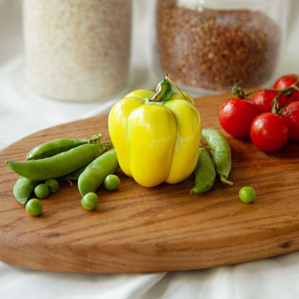 Подвес “Перец” изготовлен вручную и входит в коллекцию ёлочных украшений “Фрукты и овощи”. Художник воспользовался всей роскошной палитрой керамических глазурей, благодаря чему изделие выглядит совершенно как настоящее. Перец не только символизирует изобилие, но и станет прекрасным украшением вашего интерьера, дополнив собой кухонный декор или украсив новогоднюю ель. Он подчеркнет ваш индивидуальный стиль, добавит уют вашему дому и придется по вкусу ценителям красивых и необычных вещей.