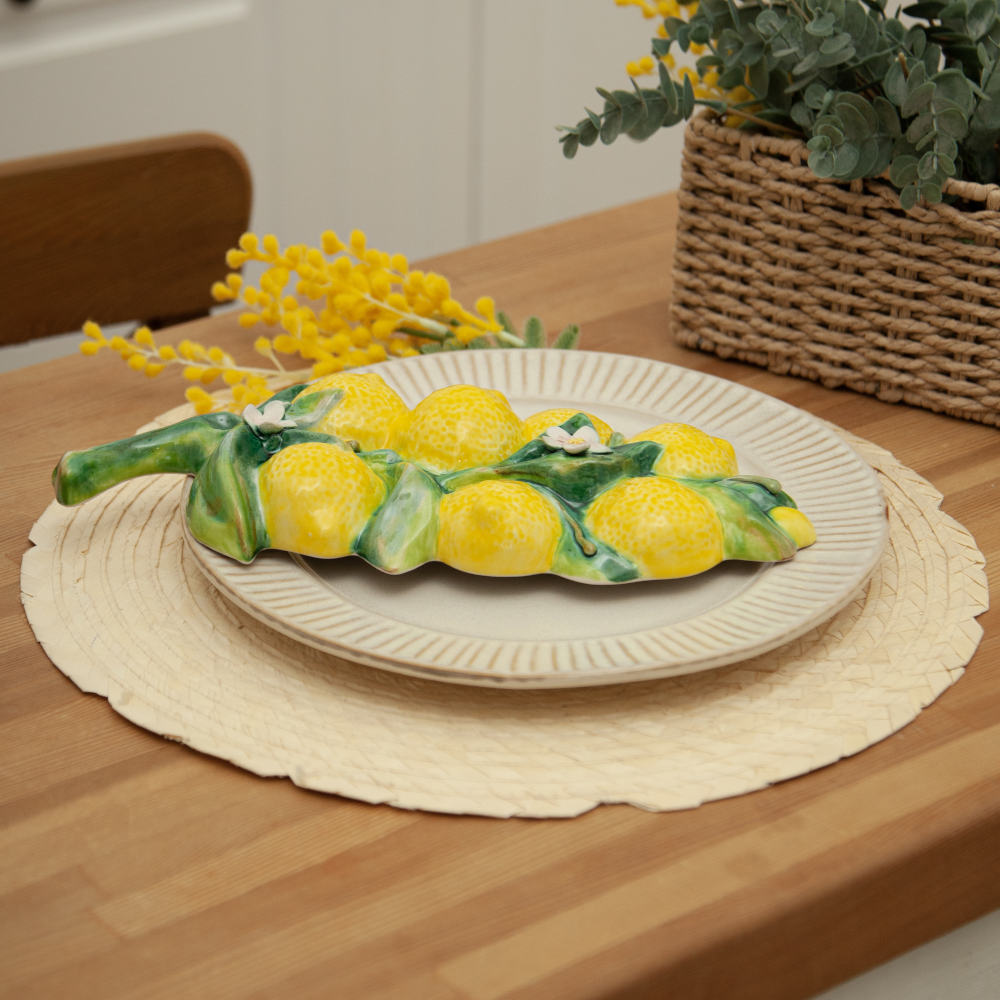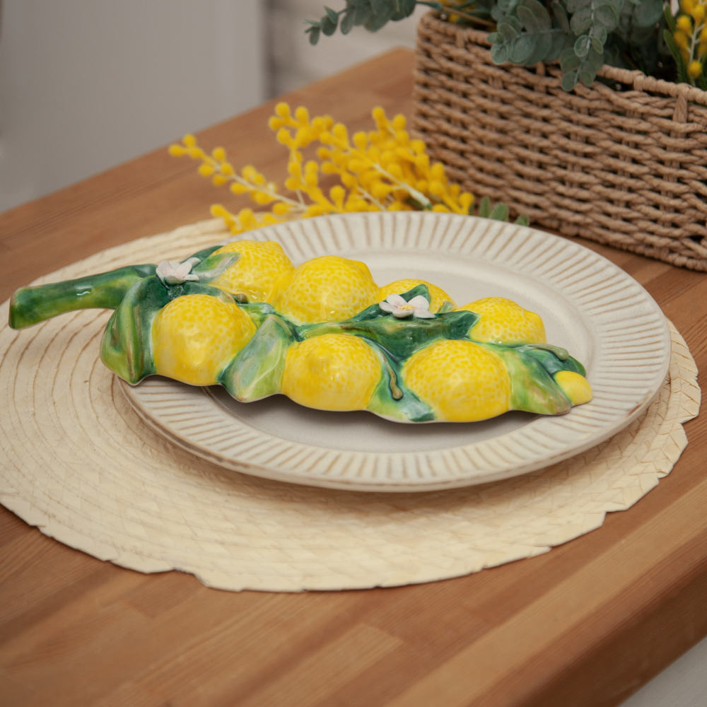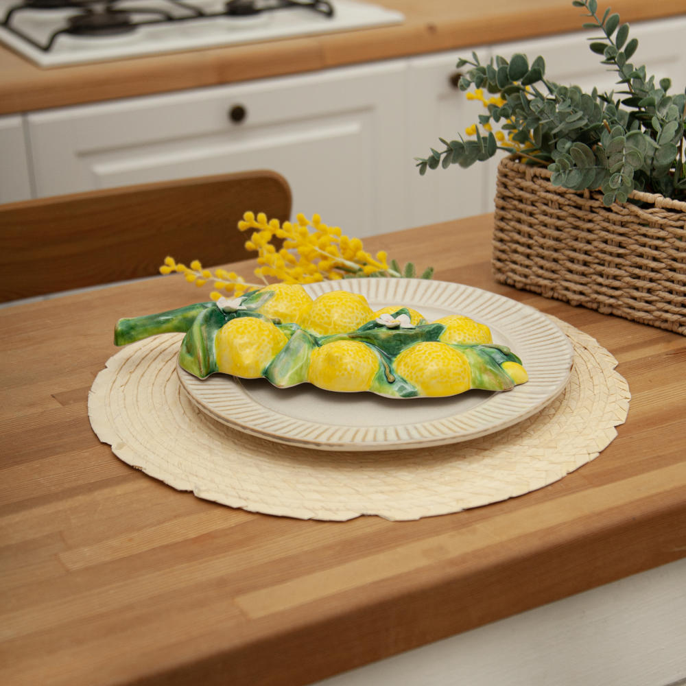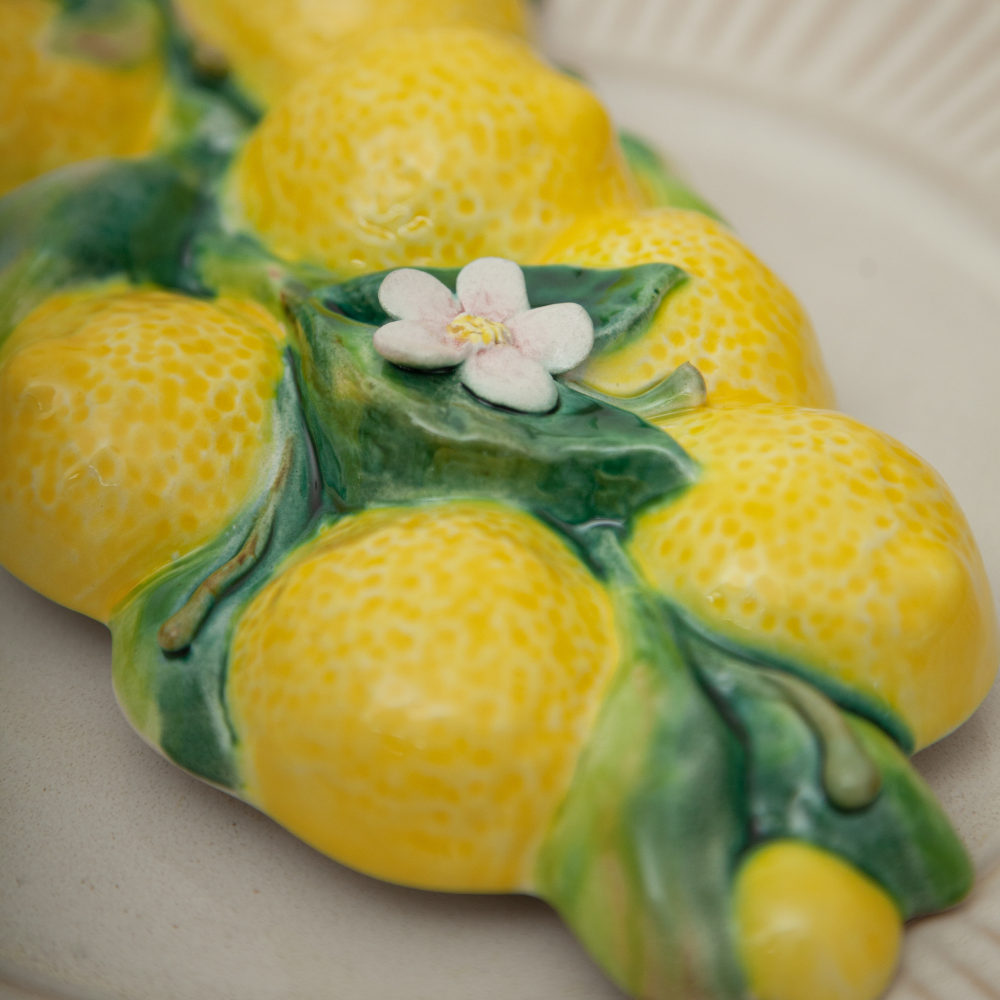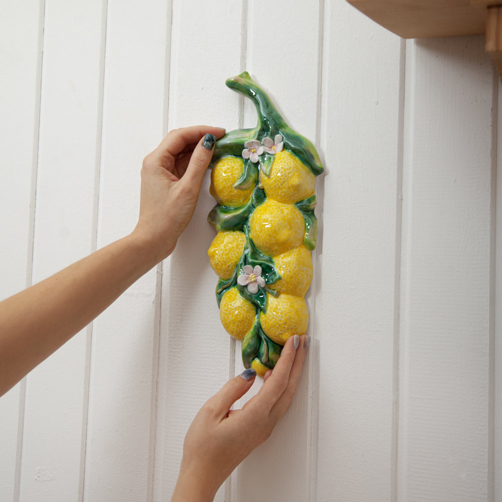 Это изделие ручной работы представляет собой связку лимонов. Художник воспользовался всей роскошной палитрой современных керамических глазурей, связка выглядит очень эффектно. Лимон символизирует долголетие и красоту. Лимонное дерево гармонизируют энергетику в семье, приносит в дом здоровье, благополучие и богатство. Керамическая связка лимонов – эффектное украшение в интерьере дома, яркий акцент при оформлении ресторанов и кафе, это – также замечательный подарок, оценят его и коллекционеры.