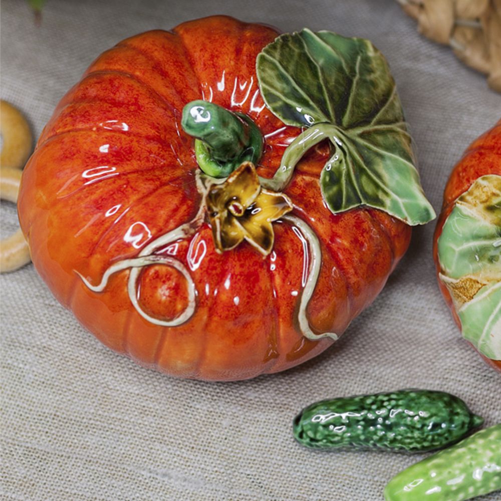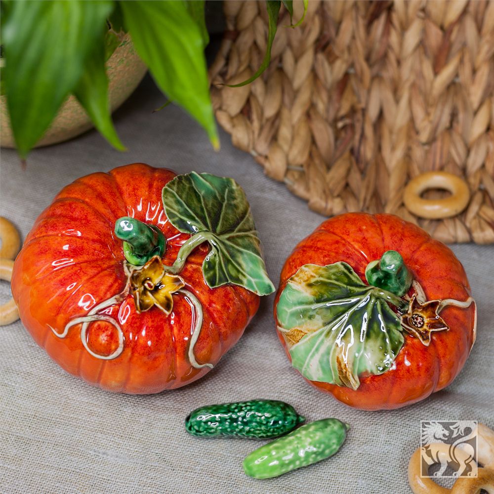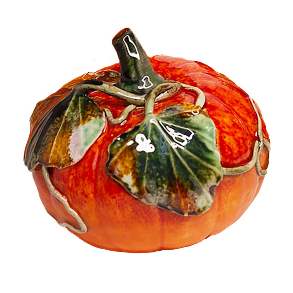 Изделие ручной работы представляет керамическую тыкву средних размеров. Художник воспользовался всей роскошной палитрой современных керамических глазурей, чтобы передать всю восхитительную яркость этой красавицы, она выглядит как настоящая. Тыква – это символ плодородия, изобилия, процветания и крепкого здоровья. Тыква – оберег для дома, защита от негатива. Эта керамическая тыква станет эффектным украшением вашего дома, его оберегом, а также замечательным подарком. Вся коллекция тыкв будет просто бесподобно смотреться в интерьере, станет восторженной одой золотой осени, создаст неповторимое настроение, может быть использована для создания эффектных интерьеров в кафе, ресторанах, барах или как модель на уроках рисования.