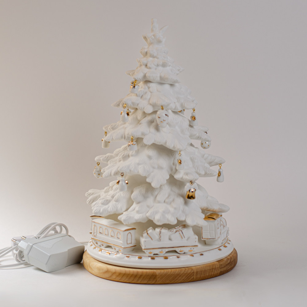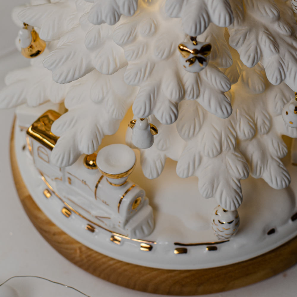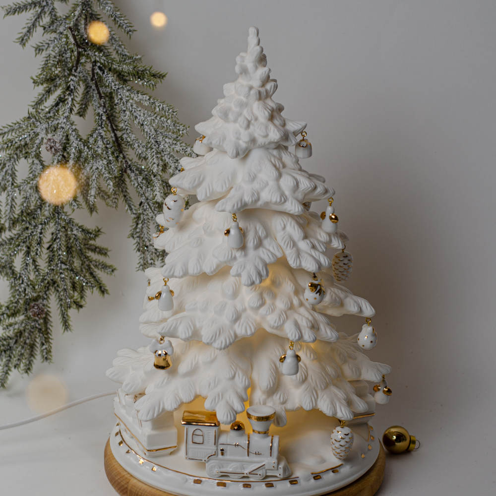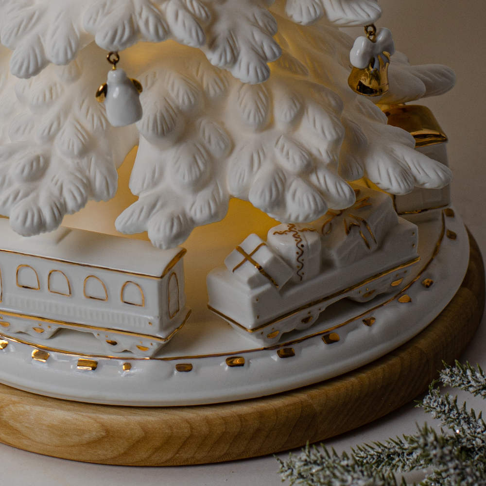 Елка с паровозом и вагончиками со светильником (фарфор)