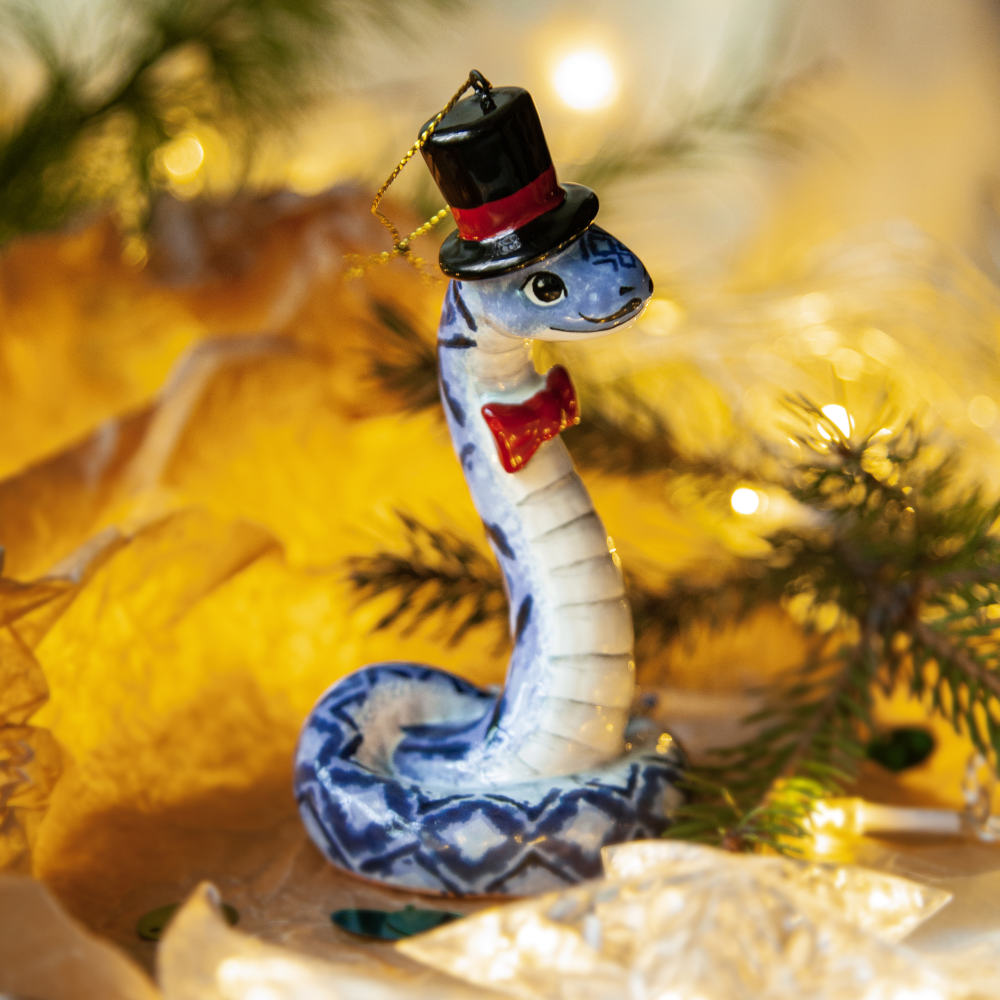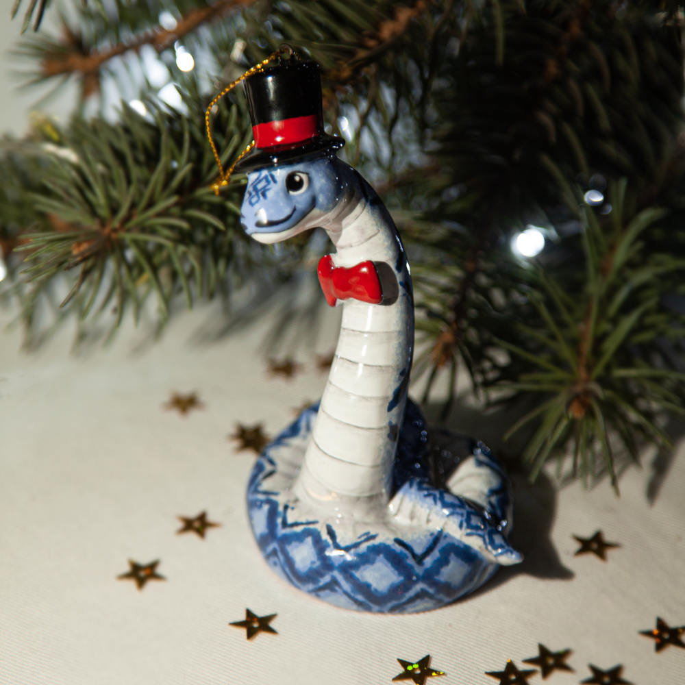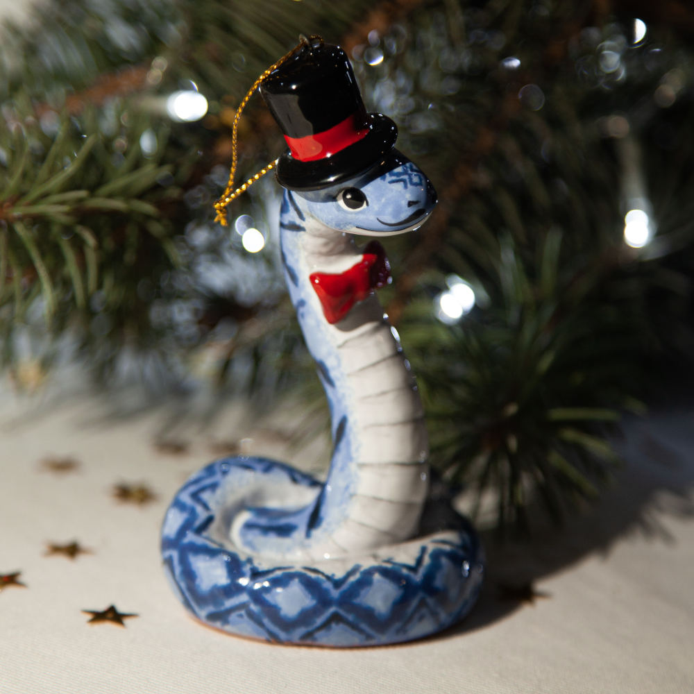 “”Змей в Цилиндре”” – это не просто украшение, это символ не только Новогодних праздников, но и необычный подарок друзей, коллег и коллекционеров керамики. Он расскажет о вашем тонком вкусе и оригинальности, а его загадочность станет прекрасным началом нового года.”