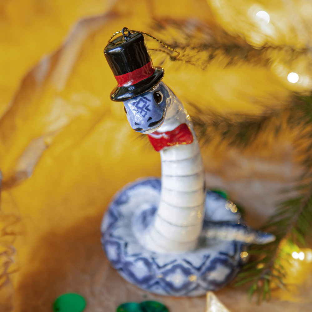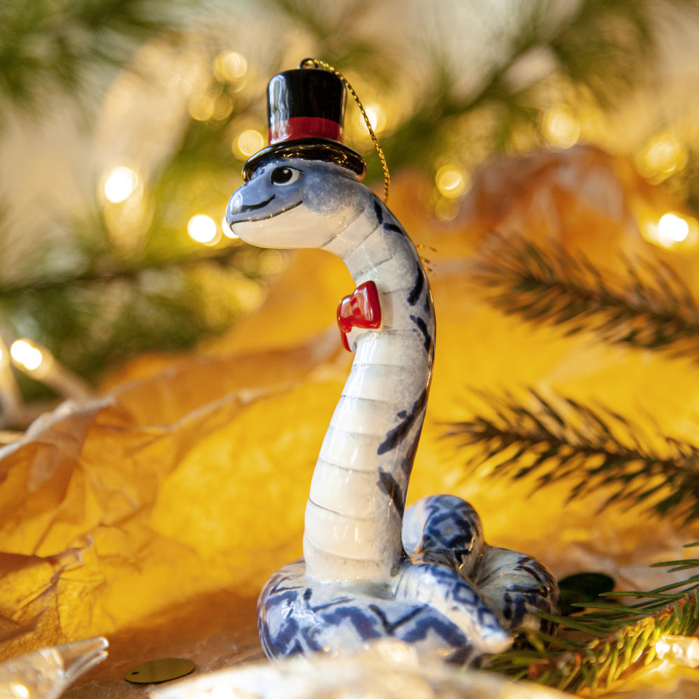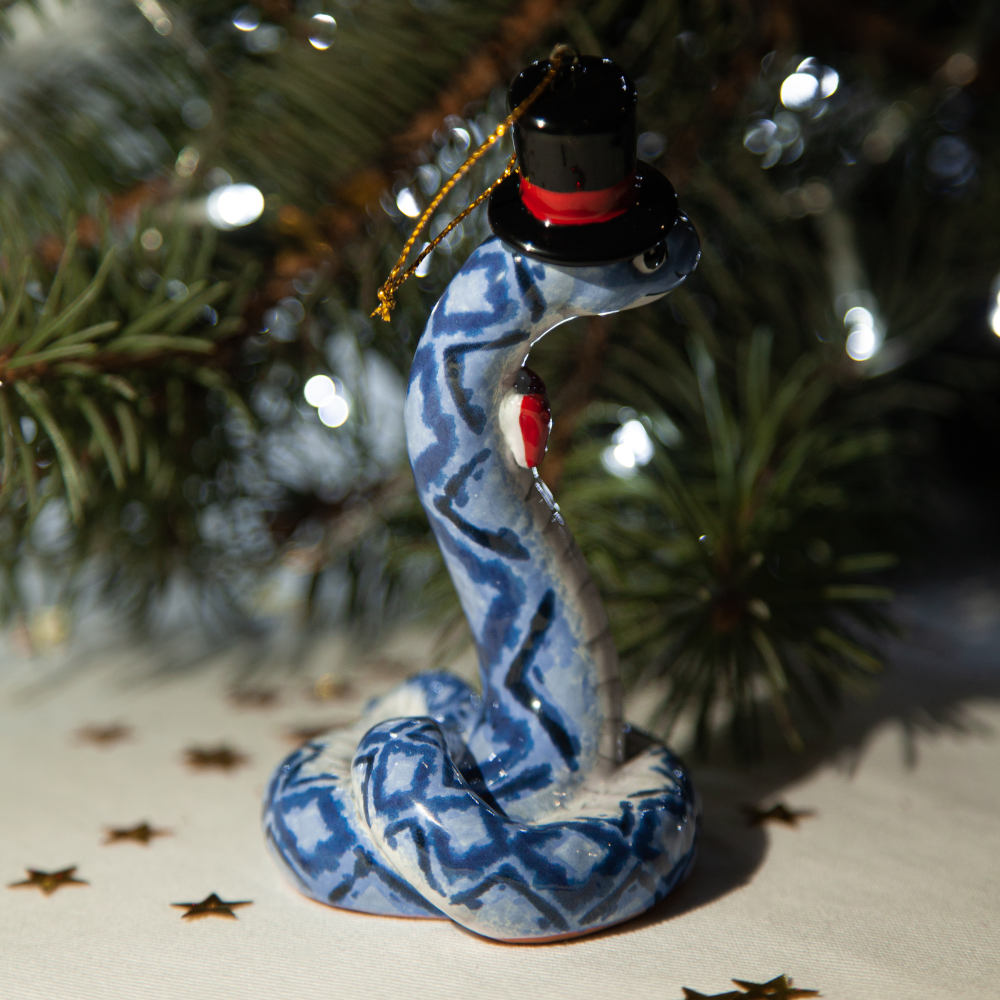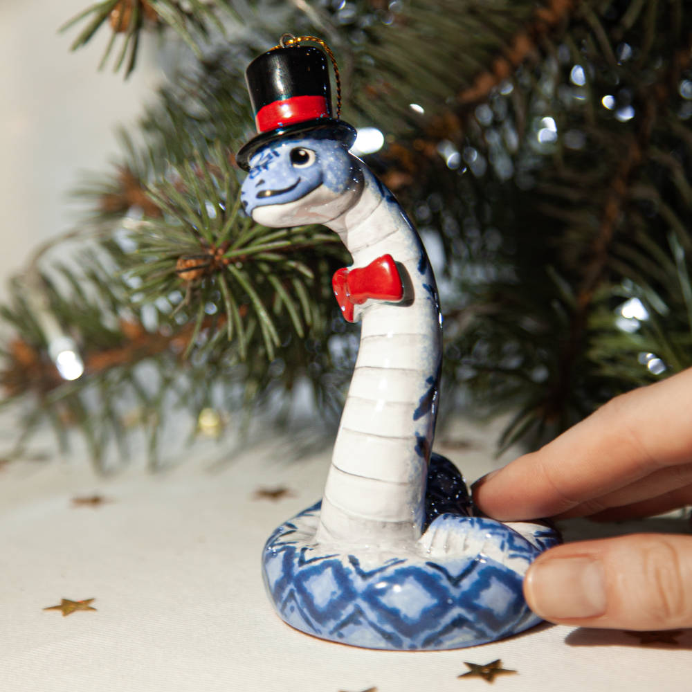 “”Змей в Цилиндре”” – это не просто украшение, это символ не только Новогодних праздников, но и необычный подарок друзей, коллег и коллекционеров керамики. Он расскажет о вашем тонком вкусе и оригинальности, а его загадочность станет прекрасным началом нового года.”