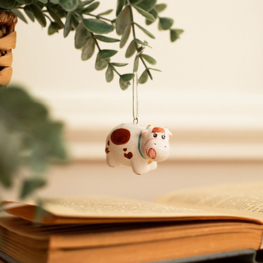 Мини-подвес “”Коровка”” изготовлен в технике майолика, украшен ручной художественной росписью и входит в коллекцию украшений “”Для маленькой ёлочки””. Это обаятельная пятнистая буренка – символ удачи и достатка на работе и в семье. Она станет прекрасным украшением для новогодней ёлочки и символичным подарком для близких и друзей. Буренка – запоминающийся подарок как на Новый год и Рождество, так и для ценителей и коллекционеров изделий ручной работы.”