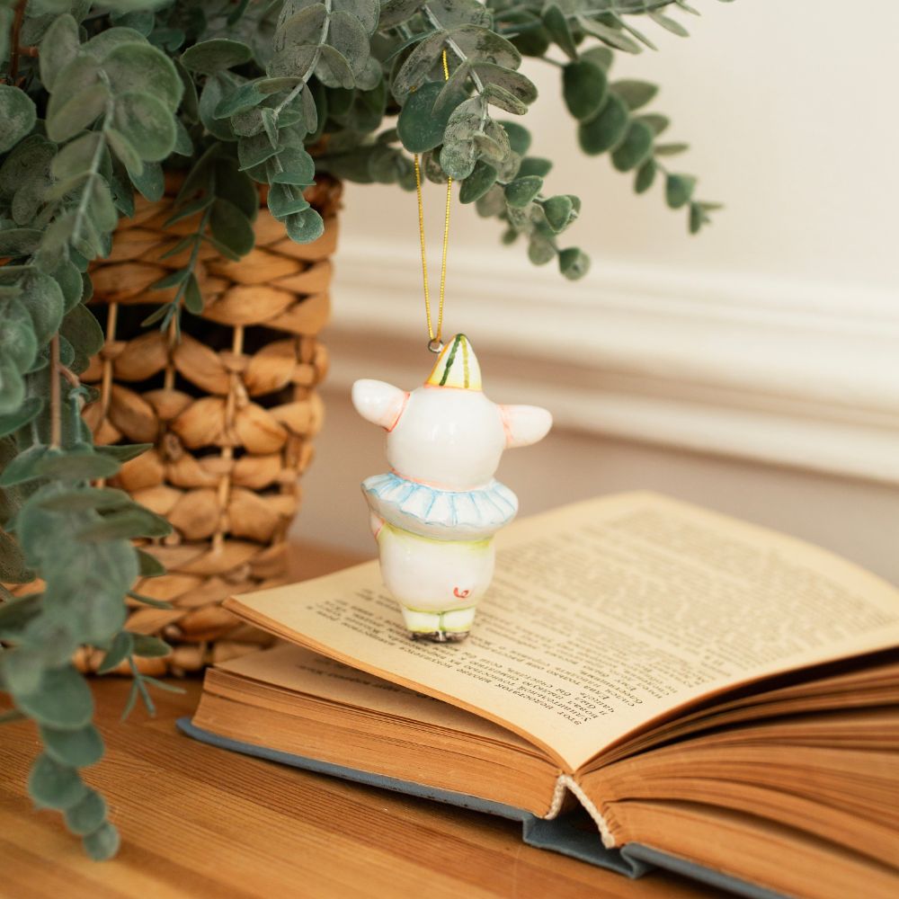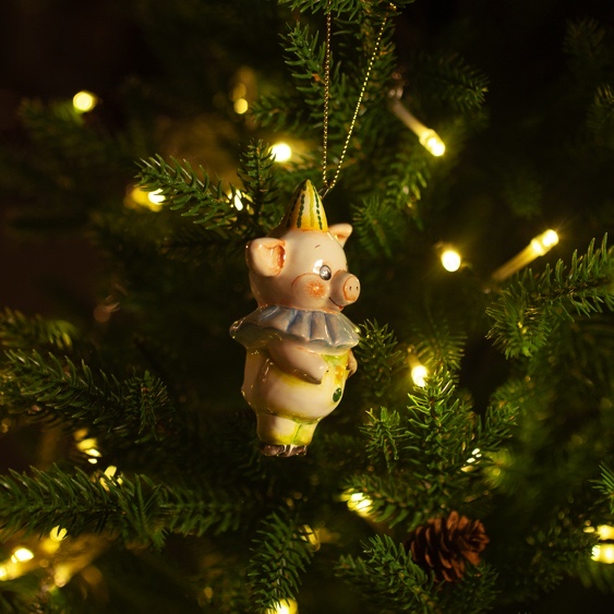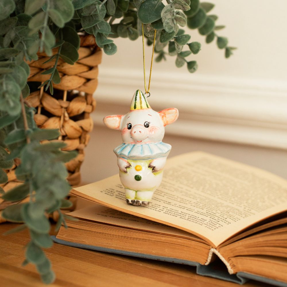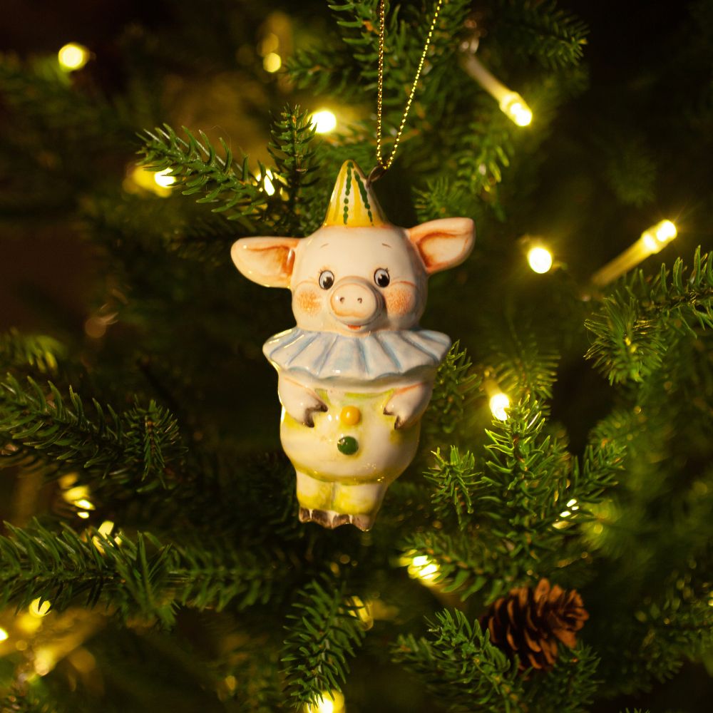 Данное изделие ручной работы входит в коллекцию Символы Года и представляет фигурку поросенка в ярком костюмчике. Свинья покровительствует двенадцатому году китайского гороскопа и выступает символом материнства, благополучия и достатка. Симпатичные, веселые поросятки будут замечательным украшение для новогодней елочки, создадут праздничное настроение. Данная игрушка – это ещё и изящный подарок к Рождеству и Новому году, особенно в год Петуха.