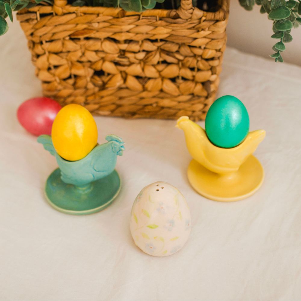 Керамические подставки для яйца в форме курочки и петуха, прекрасно дополнят атмосферу любой трапезы, а солонка в форме яйца станет незаменимым элементом вашего стола.