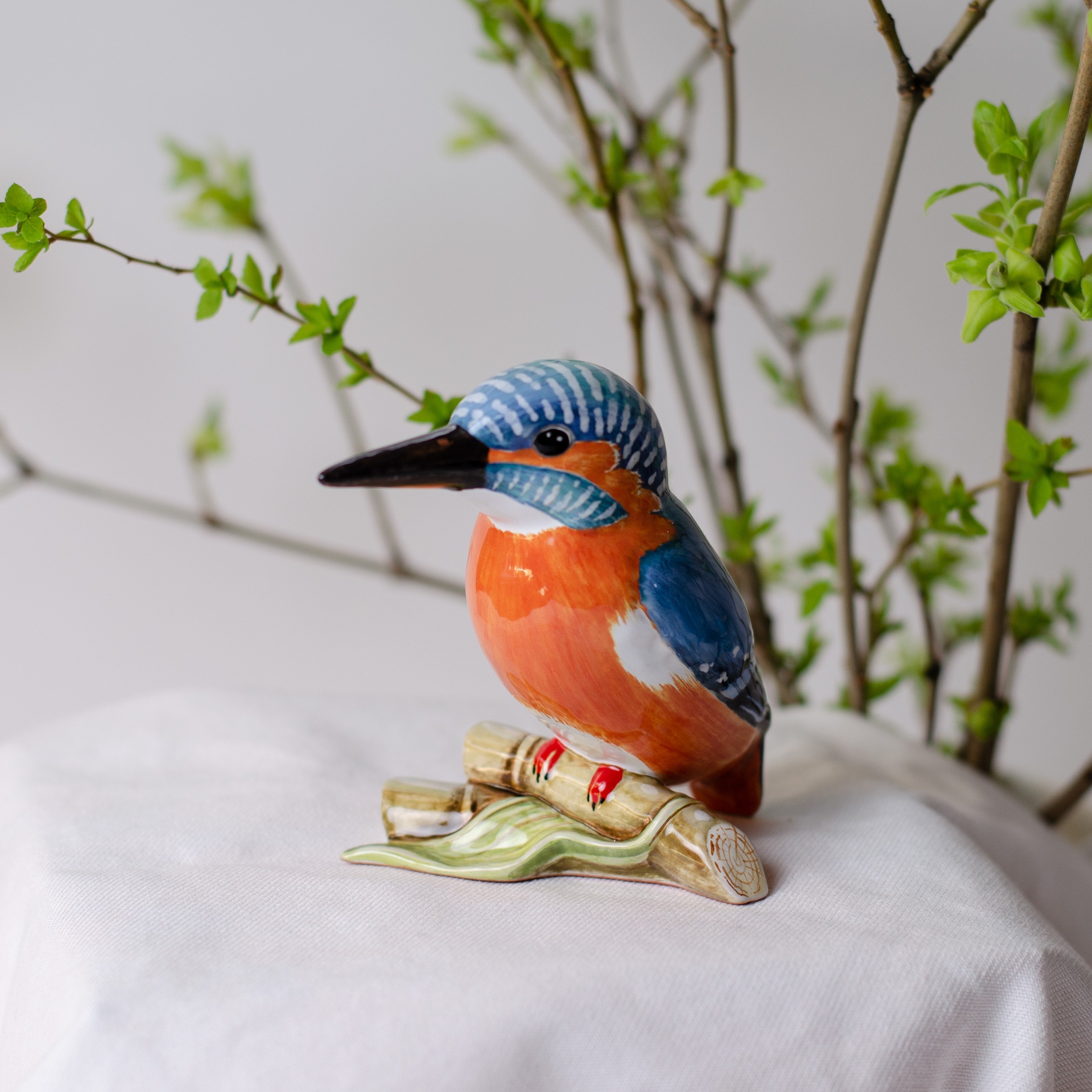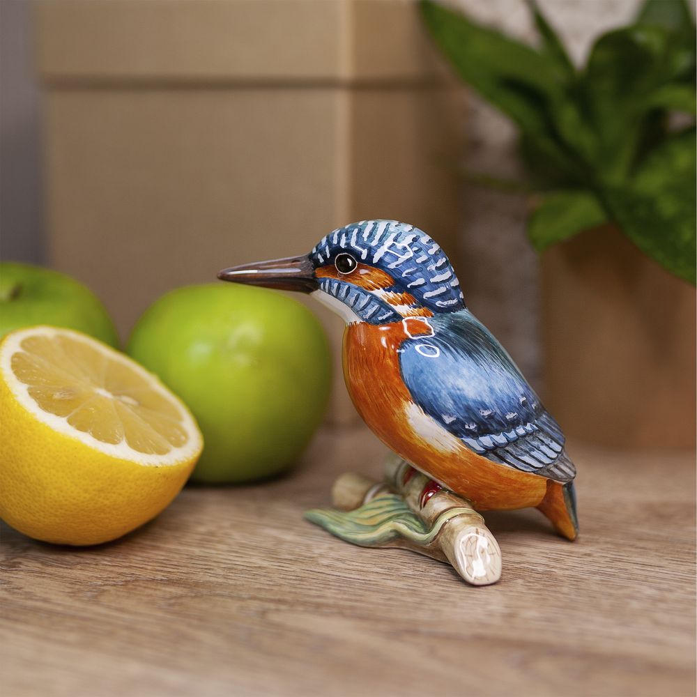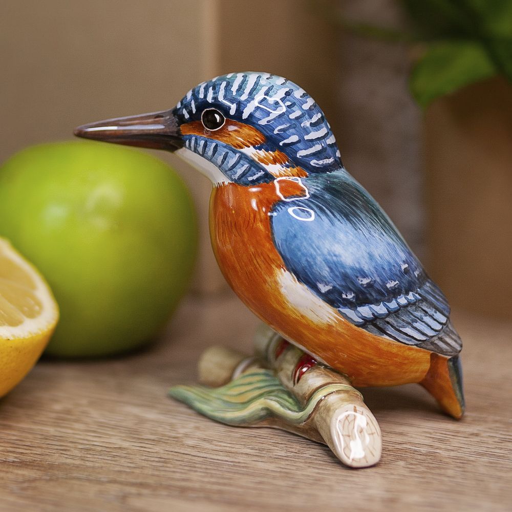 Изделие представляет фигурку зимородка, сидящего на ветке. Художник точно передал окрас и форму этой удивительной птицы, которая привлекает внимание своим ярким оперением, отличается удлиненным клювом и коротким хвостиком. Керамическая фигурка зимородка станет прекрасным подарком родным, близким или тем, кому вы хотите передать положительные эмоции и радость, будет чудесным украшением интерьера, порадует коллекционеров.