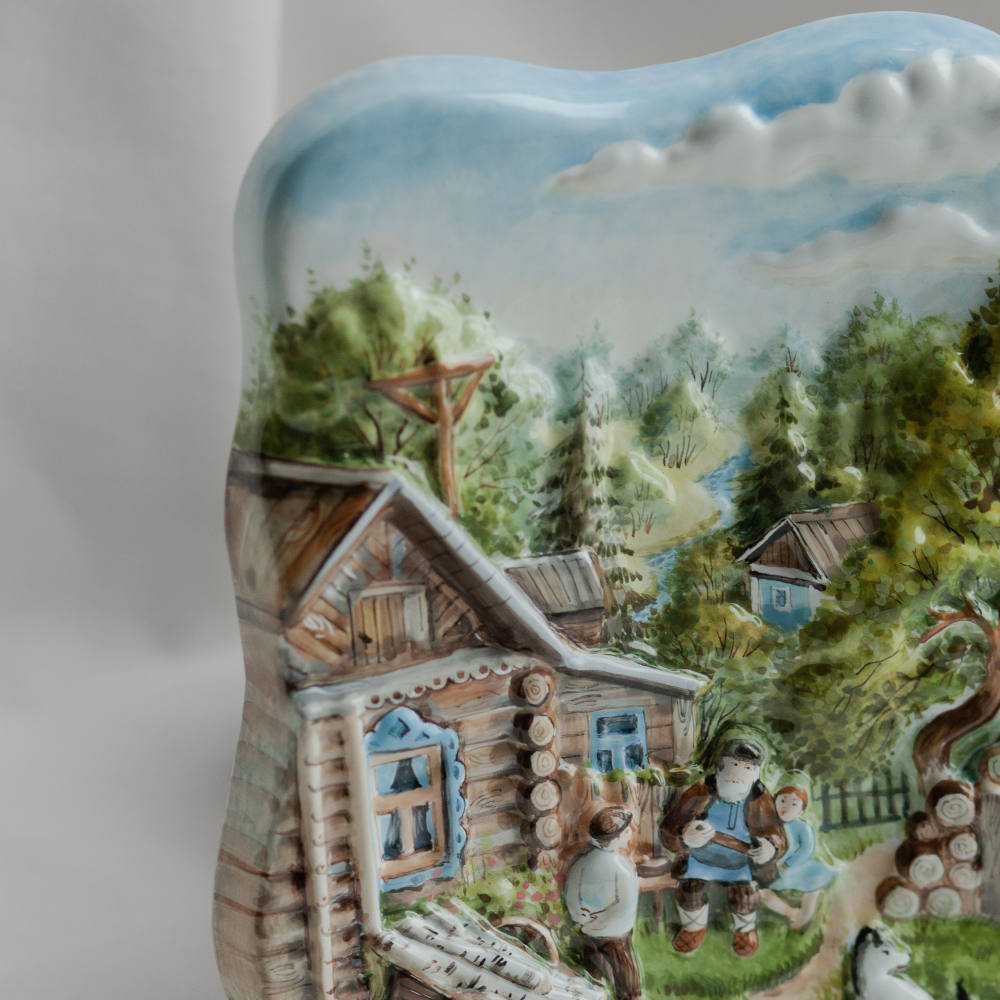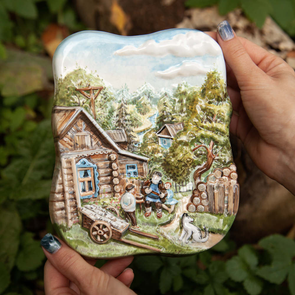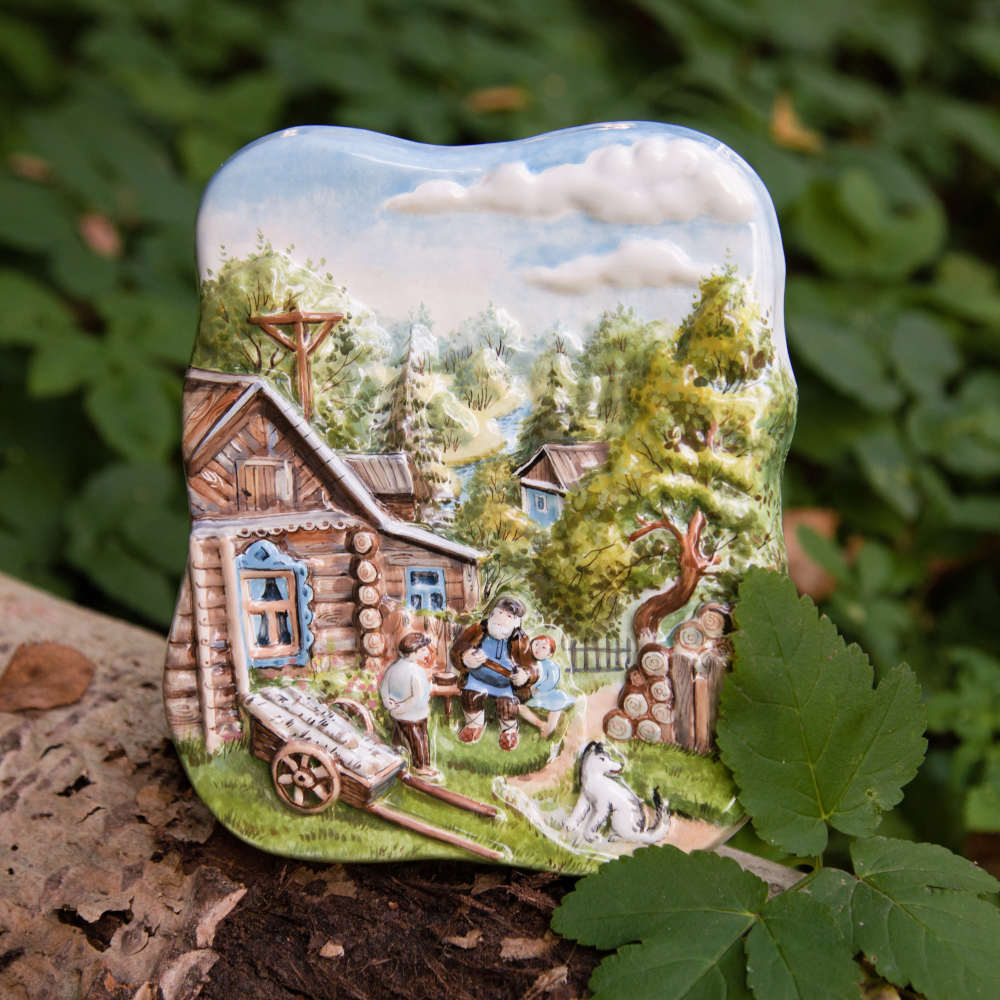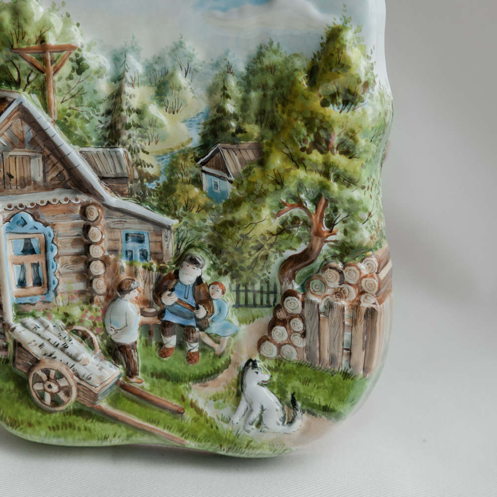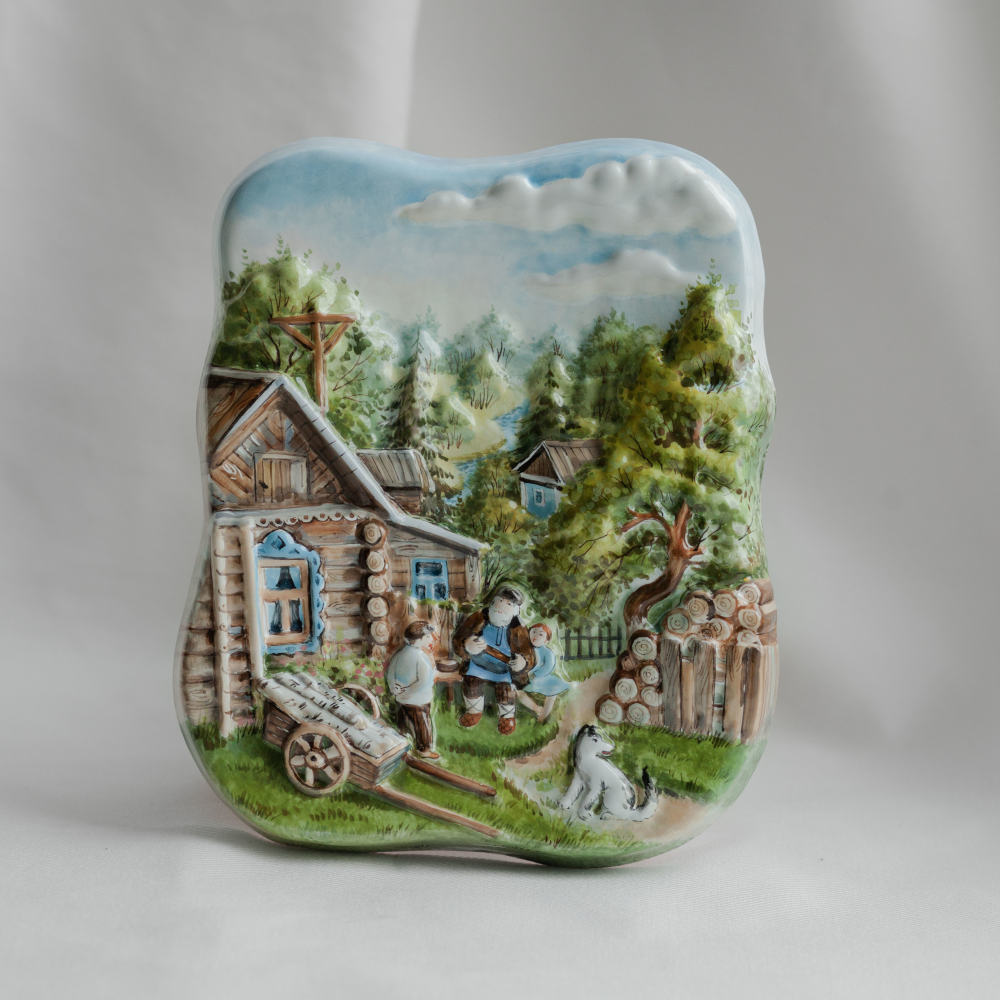 Рельеф “Деревенское лето (малый с дедом)” изготовлен в технике майолика и украшен ручной художественной росписью. Мастером очень тонко изображена жизнь русской деревни – самобытные жители и их повседневный быт, маленький деревянный домик за околицей, спокойствие и тихая радость от яркого мира вокруг. Каждая деталь и фигура на изделии, заставляет задуматься и воссоздает образы повседневной жизни нашего народа. Этот керамический рельеф станет не только великолепным украшением для интерьера, но и настоящим произведением искусства, которое будет радовать своего владельца душевным теплом и ностальгией за прошлыми временами. Он станет уникальным подарком, который подчеркнет изысканный вкус и внимательное отношение к традициям и наследию.