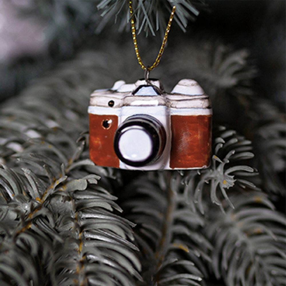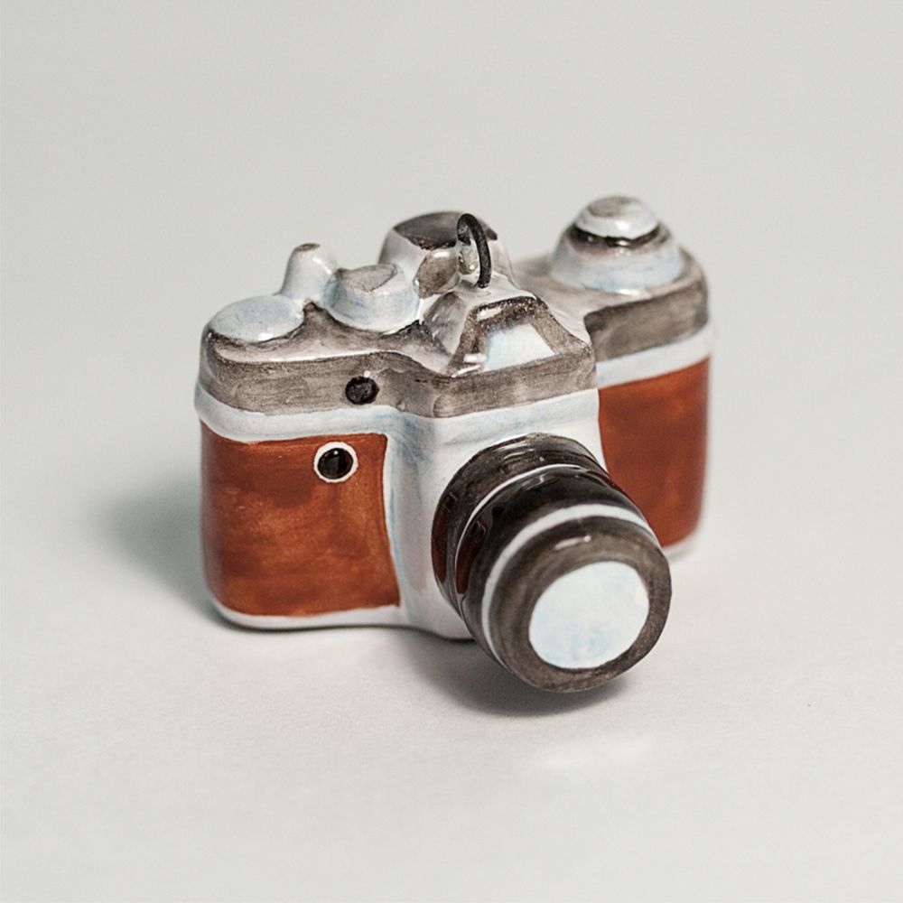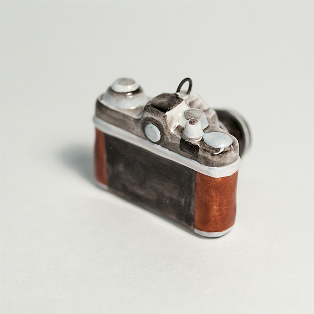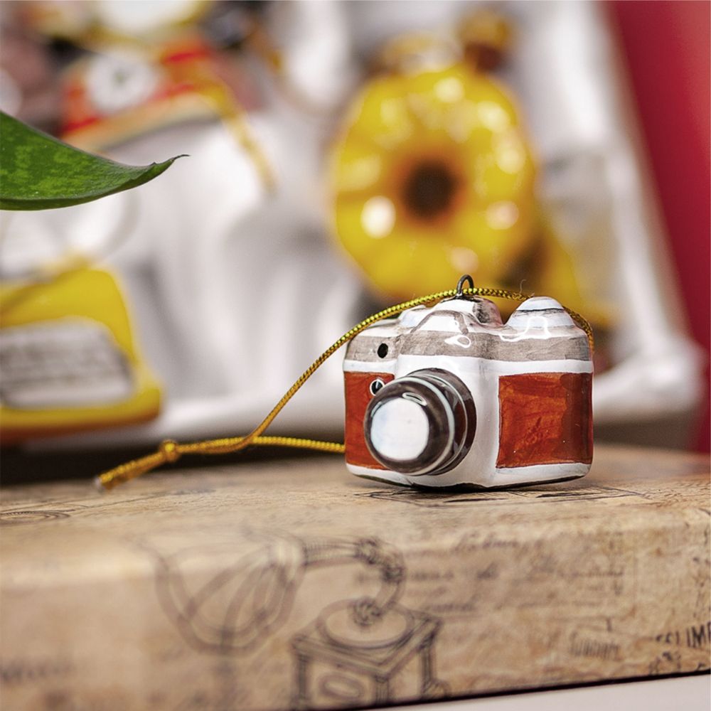 Елочный подвес “”Фотоаппарат””, изготовлен в технике майолика, украшен ручной художественной росписью и входит в набор елочных украшений “”Ретроштучки””. Раритетная ретро-камера, стильное и эксклюзивное изделие, которое вернет вас в атмосферу 20 века и напомнит об искусстве пленочной фотосъемки. Такой подарок порадует фотолюбителей и подчеркнет тонкий вкус дарителя такой игрушки. Этот ретро фотоаппарат принесет особое праздничное настроение в ваш дом, станет прекрасным подарком не только на Новый год, но и на любой другой праздник, радуя глаз и душу своей оригинальностью.”