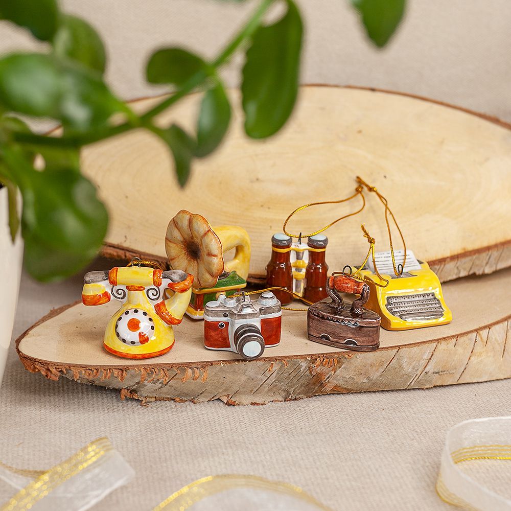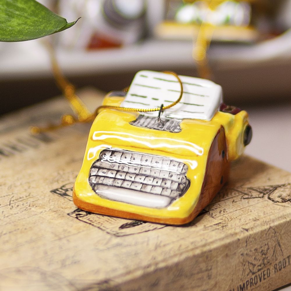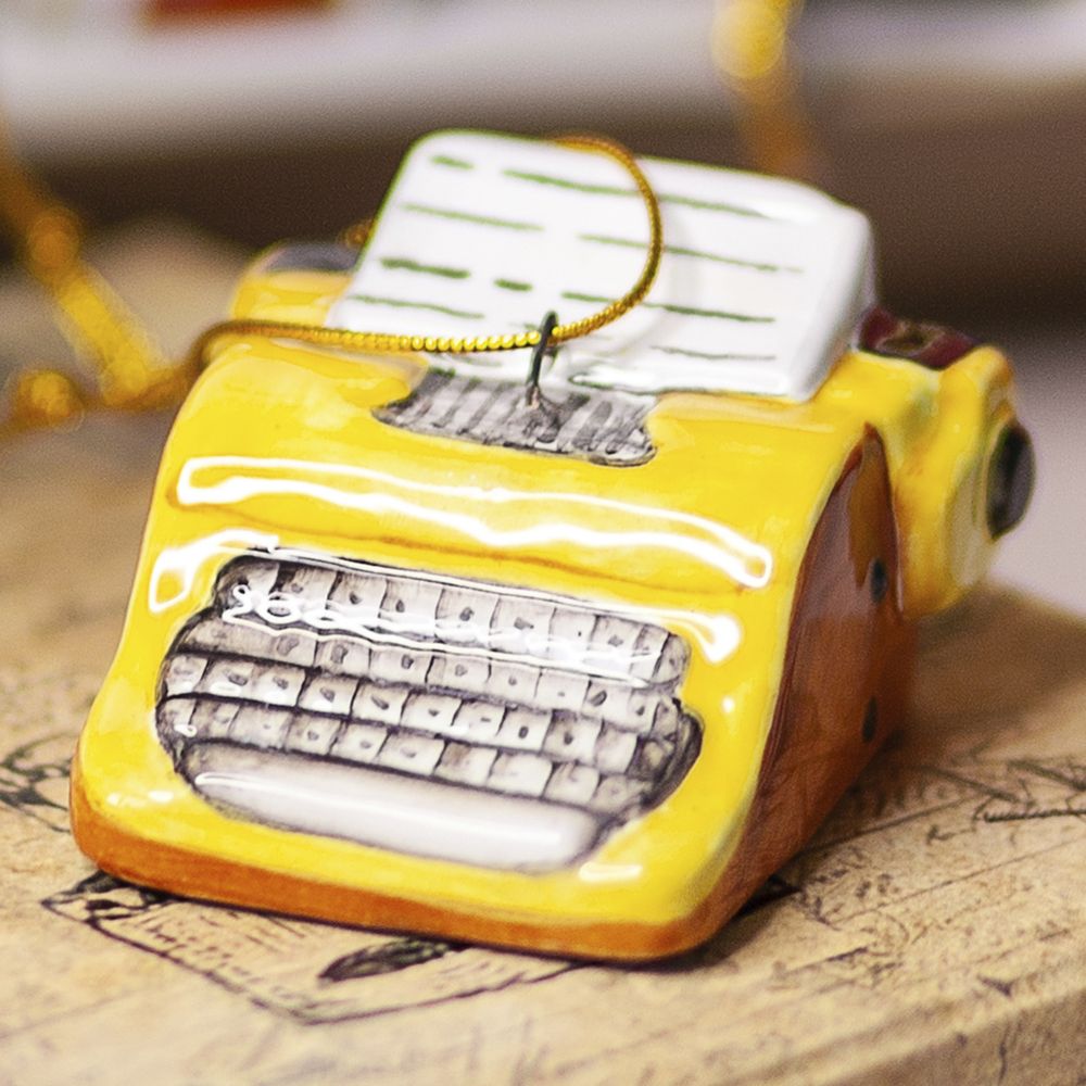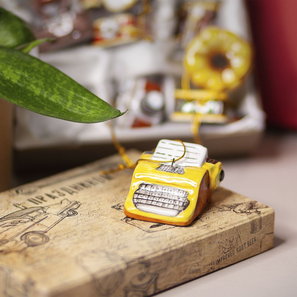 Елочный подвес “”Пишущая машинка””, изготовлен в технике майолика, украшен ручной художественной росписью и входит в набор елочных украшений “”Ретроштучки””. Всего четверть века назад пишущая машинка была неотъемлемой частью солидных учреждений и домашних офисов. Ее характерный грохот во время работы делал ее легко узнаваемой, и она звучала не менее громко, чем пулемет. Сегодня, в век компьютеров, пишущие машинки ушли в прошлое, оставив за собой множество интересных историй, которые можно изучить благодаря интернету. Керамическая пишущая машинка, может стать прекрасным подарком на Новый год или другой праздник, радуя как коллекционеров, так и всех, кто ценит историю техники и ручной труд. Это уникальное елочное украшение привнесет в ваш дом атмосферу уюта, тепла и ностальгии, радуя всех своим особенным дизайном.”