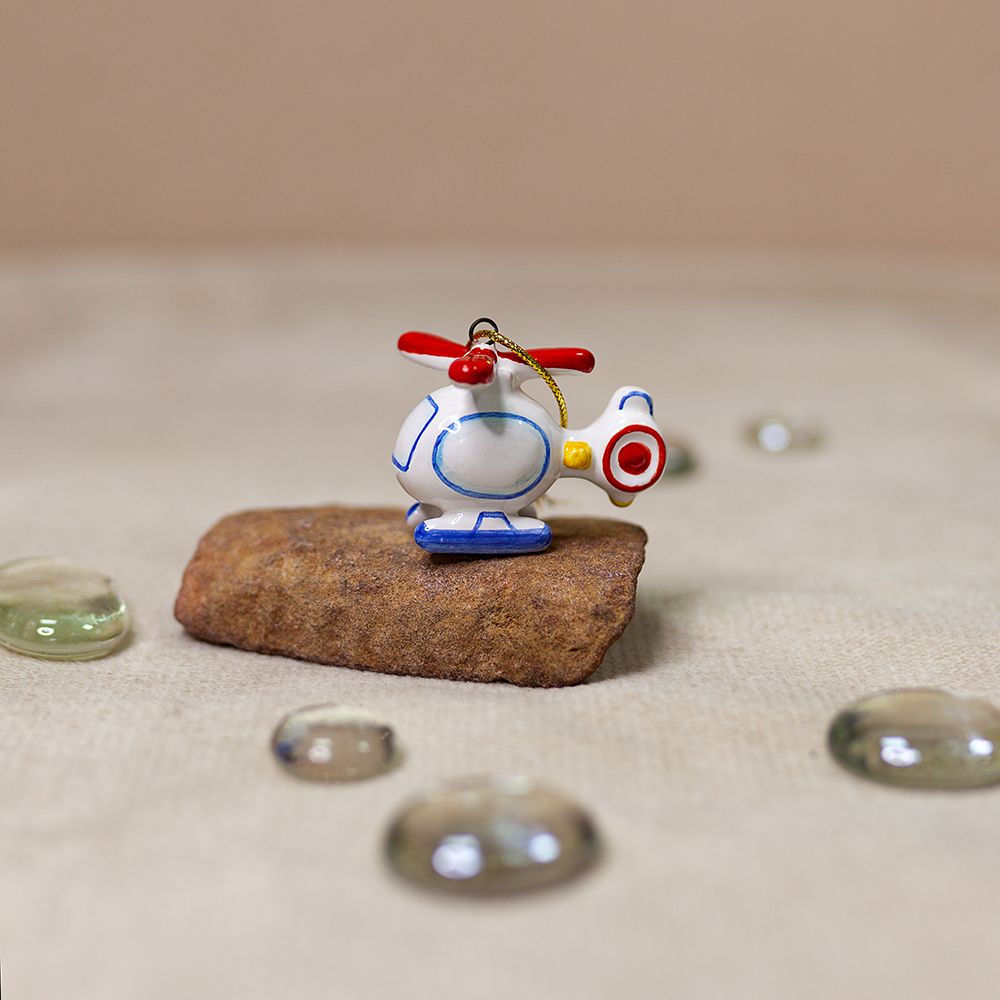 Это изделие ручной работы входит в коллекцию эксклюзивных елочных украшений “Ретротранспорт”. Художник лёгкими линиями обозначил общую форму игрушки, добавил яркие детали. Вертолет намекнет на стремление к новым высотам, любовь к полетам и смелость, мечты и их реализацию, будет пожеланием преодоления препятствий, приятного путешествия. Вертолет станет прекрасным подарком на Новый год, а также на любой другой праздник, порадует коллекционеров.