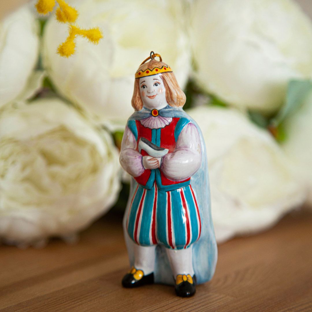 Фигурка “Принц” изготовлена в технике майолика, украшена ручной художественной росписью и входит в коллекцию “Сказки”. Эта фигурка передает нежность и романтику чудесной сказки о Золушке, создавая атмосферу волшебства и надежды о том, что мечты всегда становятся реальностью, главное не забывать мечтать. Изделие станет романтичным подарком для второй половинки, а также прекрасным образцом в коллекции ценителей керамики и сказок.