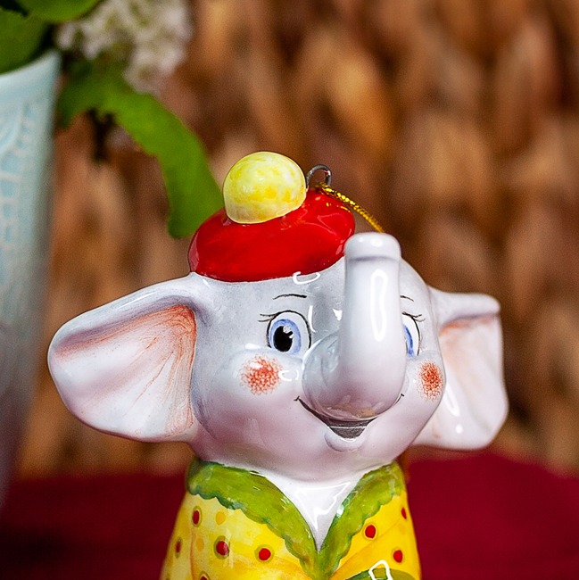 Это изделие ручной работы представляет собой фигурку сидячего слоника в яркой рубашке и шапочке помпоном. Веселый обаятельный слоник станет украшением вашей коллекции. Милую игрушку можно подарить на Новый год, а также на любой другой праздник.