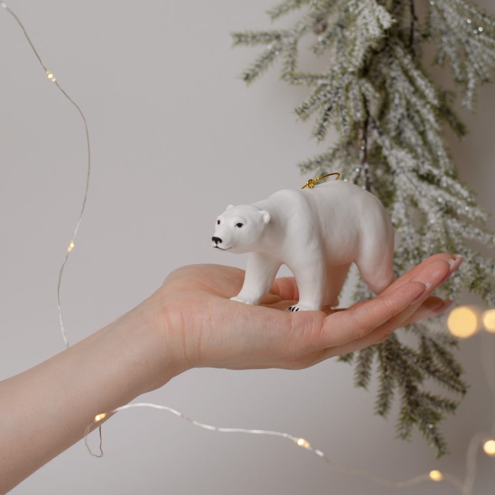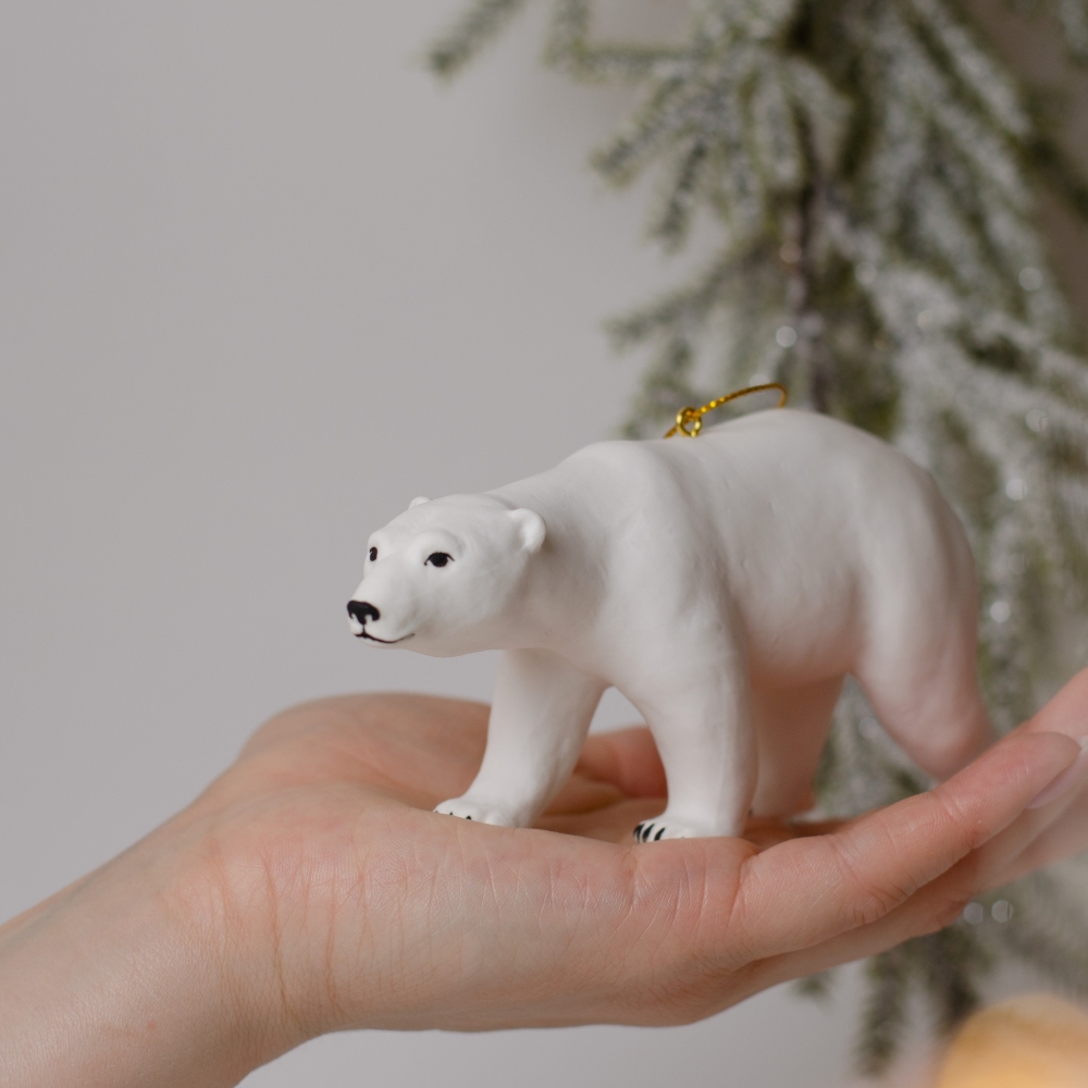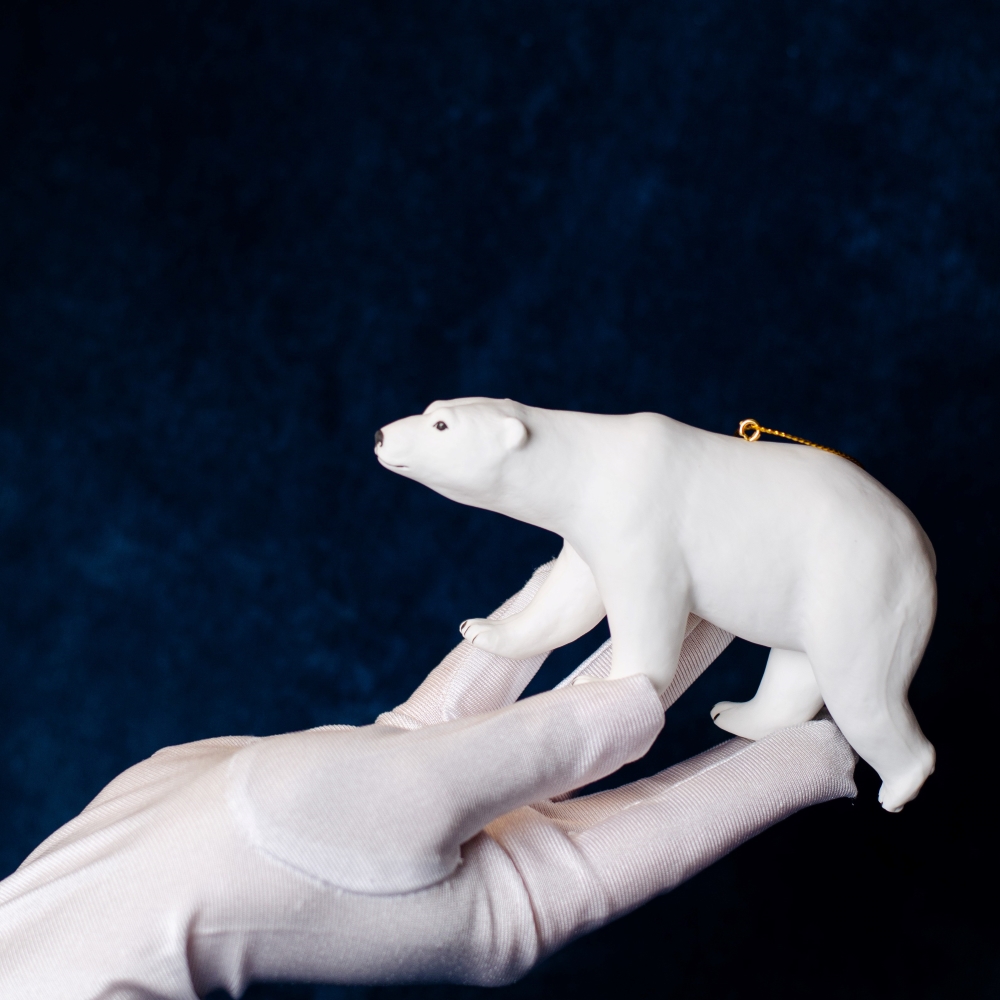 Медведь – это символ богатства и щедрости. Фигурка полярного медведя выполнена так изящно, что отражает и элегантность, и ум, и любопытство, этого крупного хищного зверя. Данное изделие будет интересным акцентом в интерьере, подчеркнет тонкий вкус владельца, а также явится замечательным подарком для любого случая, может быть стильным украшением для новогодней елки.