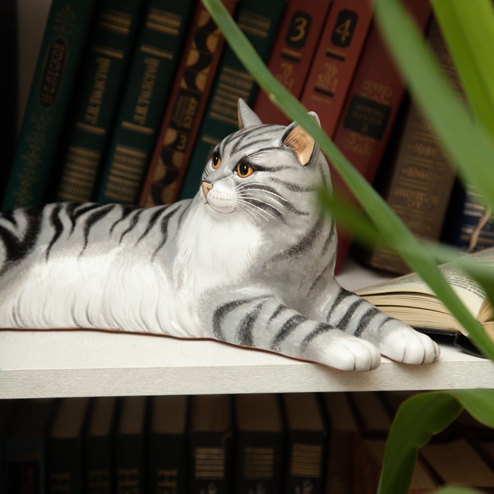 Это изделие ручной работы представляет собой вальяжно расположившуюся грациозную пишистую королеву – Её величество Кошку. Художник воспользовался всей роскошной палитрой современных керамических глазурей, чтобы передать всё обаяние и тайну, которыми обладают эти изящные, ускользающие и вновь являющиеся как ни в чём ни бывало прелестные животные. В пристальном завораживающем кошачьем взгляде чувствуется загадка, волшебство, магия. Вообще, Кошка – удивительное животное, которое живёт рядом с человеком более пяти тысяч лет. У людей и кошек сложились особые отношения – простые, честные, лишённые притворства, без сложностей и противоречий. А для некоторых, особо одиноких людей, кошка является единственным существом, которому можно излить душу, и которое в нашем веке вечной гонки и стресса успокаивает человека так, как это не сделает никакой психоаналитик. Керамическая фигурка кошки оригинально украсить интерьер, будет великолепным подарком любителям кошек, и не только им, займет достойное место в собрании коллекционеров. Возможна роспись по индивидуальному заказу.