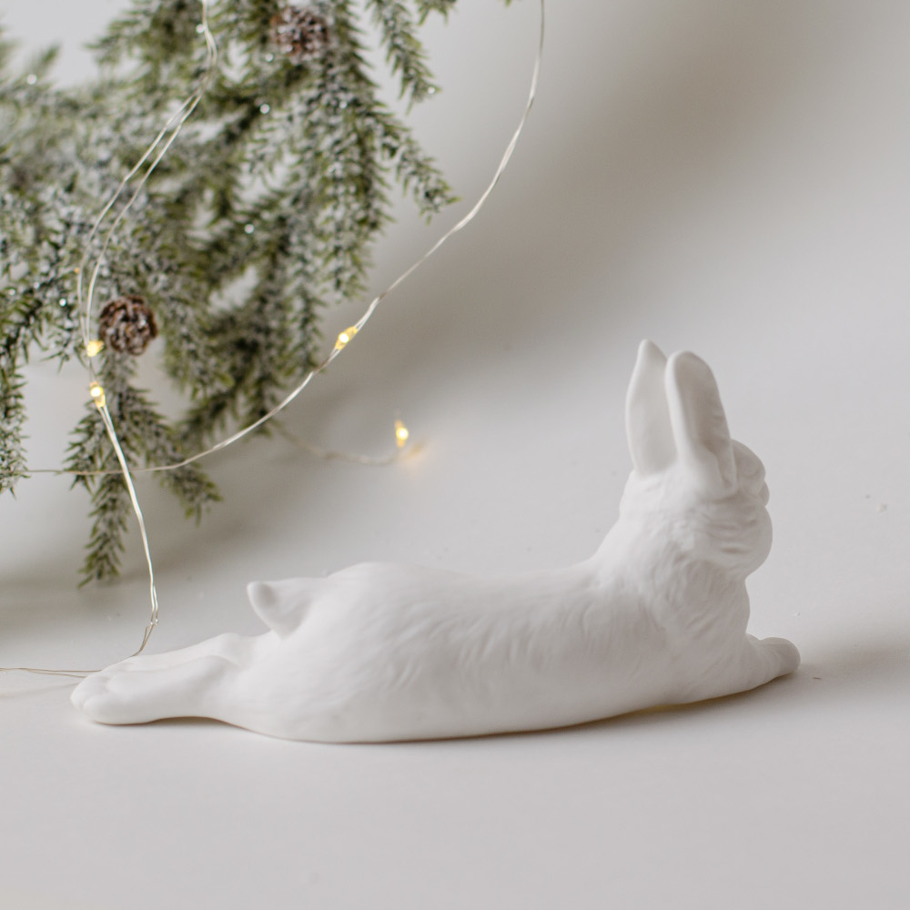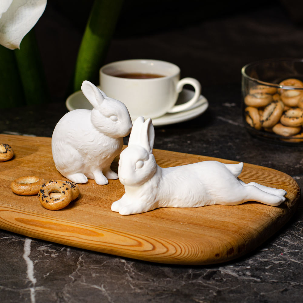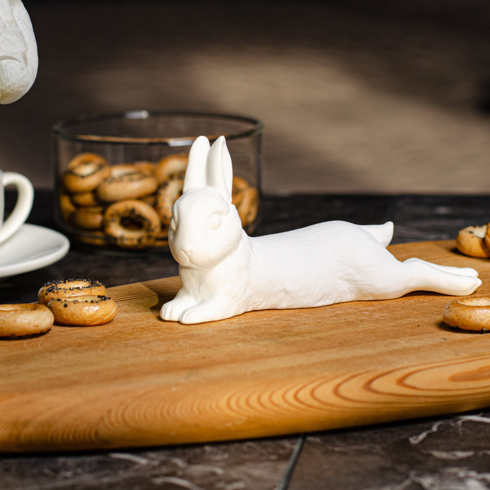 Интерьерная фигурка “Кролик лежа”, изготовленная из фарфора бисквита и детально проработана мастером-скульптором. Выразительные черты мордочки и тонкие линии создают ощущение живого существа, воплощенного в фарфоре.